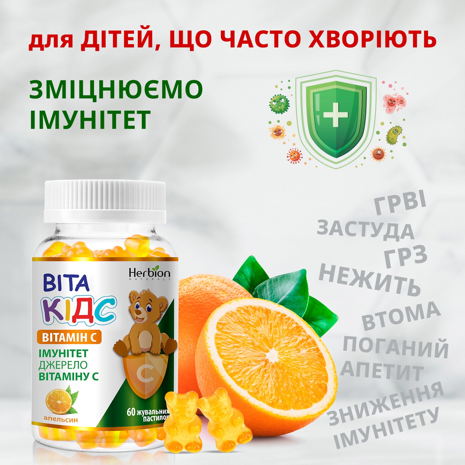 VITAKIDS chewable bear-shaped lozenges based on apple pectin with orange flavor are pleasant for children, and they take them with pleasure every day. Vitamins will be a great addition to your child's diet for the prevention of colds (ARI and ARVI).
