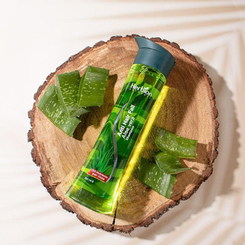 Шампунь Herbion Naturals проти випадіння волосся з алое вера спеціально розроблений для сухого та чутливого волосся. Він зміцнює волосся від коренів до кінчиків і зменшує його випадіння, балансуючи накопичення шкірного сала на шкірі голови. Вітаміни та мінерали в цьому шампуні сприяють росту міцного та здорового волосся. Ніжне, але ретельне очищення розплутує та покращує слухняність і текстуру волосся, роблячи його еластичним, доглянутим та об'ємним.